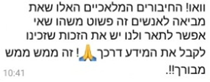 שירה: וואוו! החיבורים המלאכיים האלו שאת מביאה לאנשים זה פשוט משהו שאי אפשר לתאר ולנו יש את הזכות שזכינו לקבל את המידע דרכך! זה ממש מבורך!!