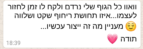 לאורך החיבור המלאכי הראשון להילת ורד הרגשתי נוכחות עדינה ומלאת אהבה שמקיפה אותי ושולחת אלי כל הזמן אהבה. התחושה הנעימה של אהבה ושקט המשיכה ללוות אותי בימים שלאחר מכן ולא הפסיקה. מאז החיבור גיליתי שאני חווה זרימת שפע מוגברת בחיי והאהבה ללא תנאי באה לידי ביטוי באספקטים שונים, גם כאלו שלא ציפיתי להם כלל. זו פשוט הרגשה נפלאה שקשה לתאר במלים!"