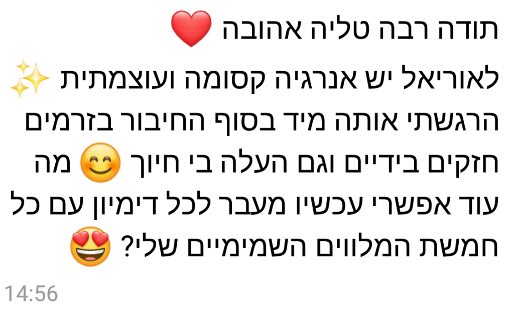 אפשר לתאם לנו שיחה באהבה ללא עלות. טליה