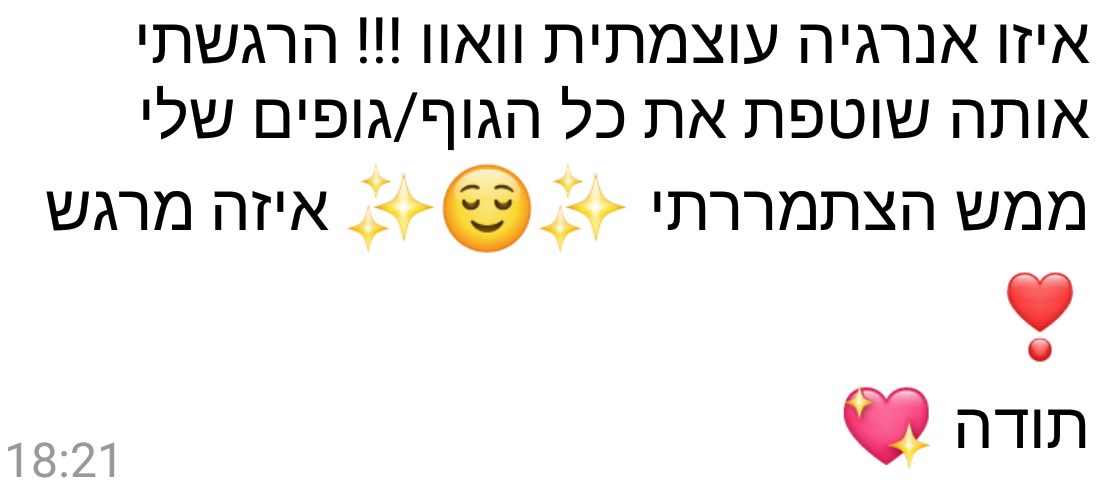 איזו אנרגיה עוצמתית וואו !! הרגשתי אותה שוטפת את כל הגוף/גופים שלי. ממש הצטמררתי. איזה מרגש. תודה